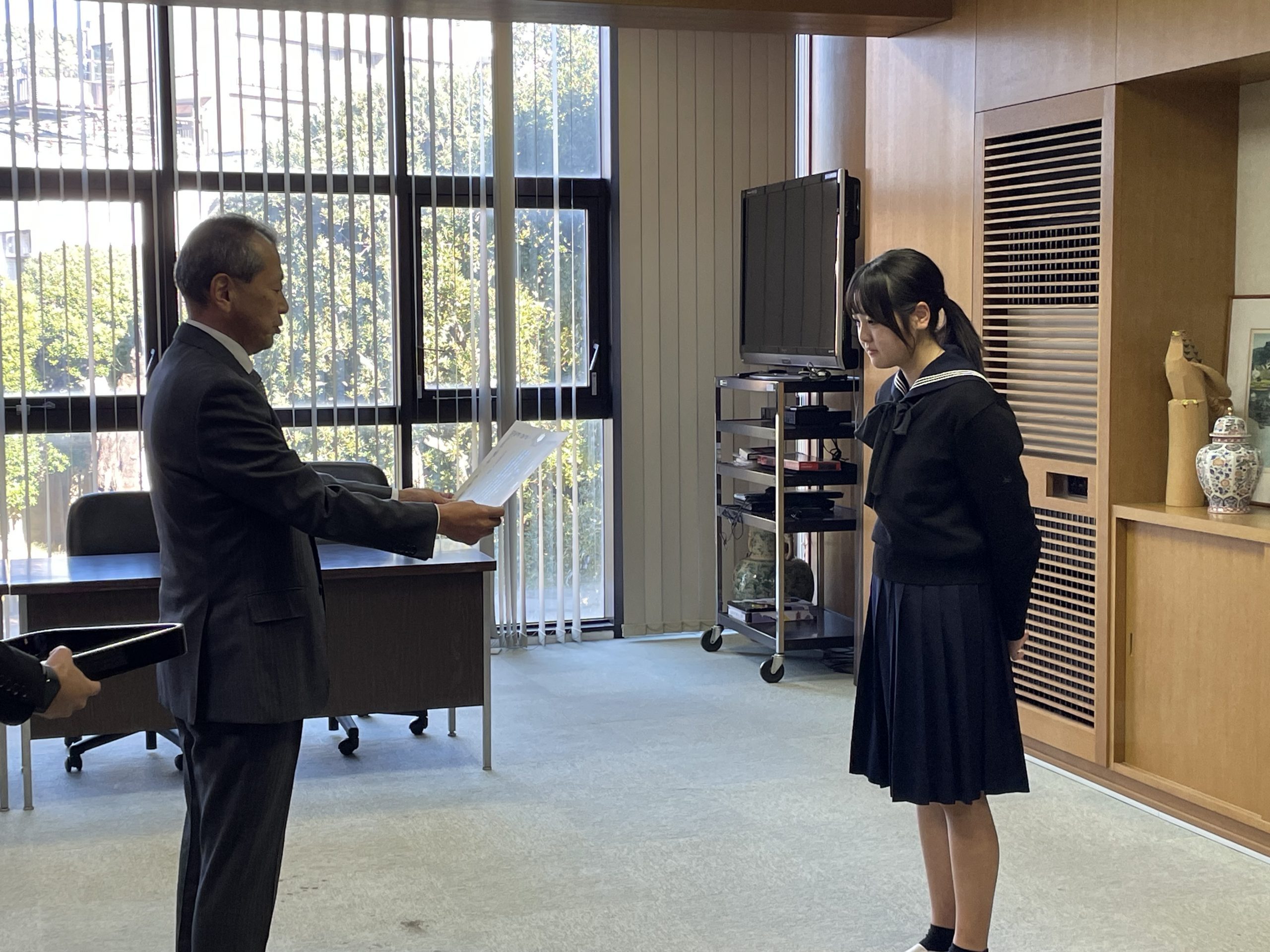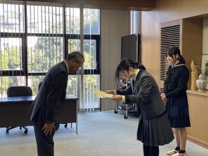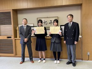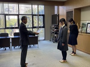 12月18日(木)には、北沢税務署より堀込進署長が来校され、校長および教員同席のもと、校内にて授賞式が行われました。