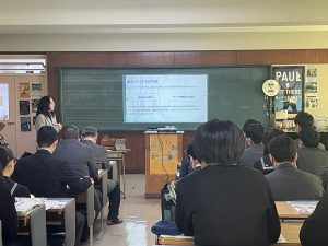 12月13日(土)、松蔭大学より先生方をお招きし、本校にて松蔭大学の学部・学科の説明および、4学部の先生方による高大連携体験授業を実施しました。
